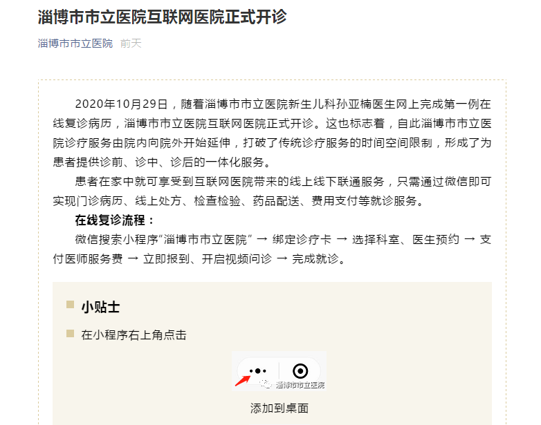 近日,由嘉和美康提供技術支持的淄博市市立醫院互聯網醫院正式開診。